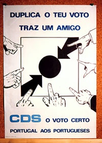 São cartazes, panfletos, flyers e imagens de propaganda dos partidos políticos que foram símbolos da Revolução. Hoje, 40 anos depois, permitem dois níveis de leitura: o das mensagens e o da iconografia da época. Os ícones aqui reproduzidos fazem parte da colecção do Centro de Documentação 25 de Abril.
